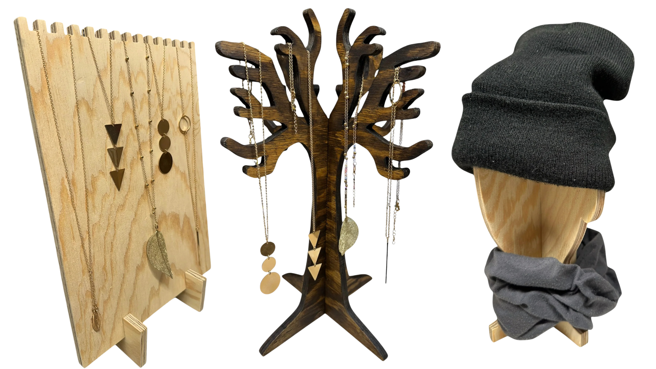 Multi-groove Wooden Necklace Display | Necklace stand