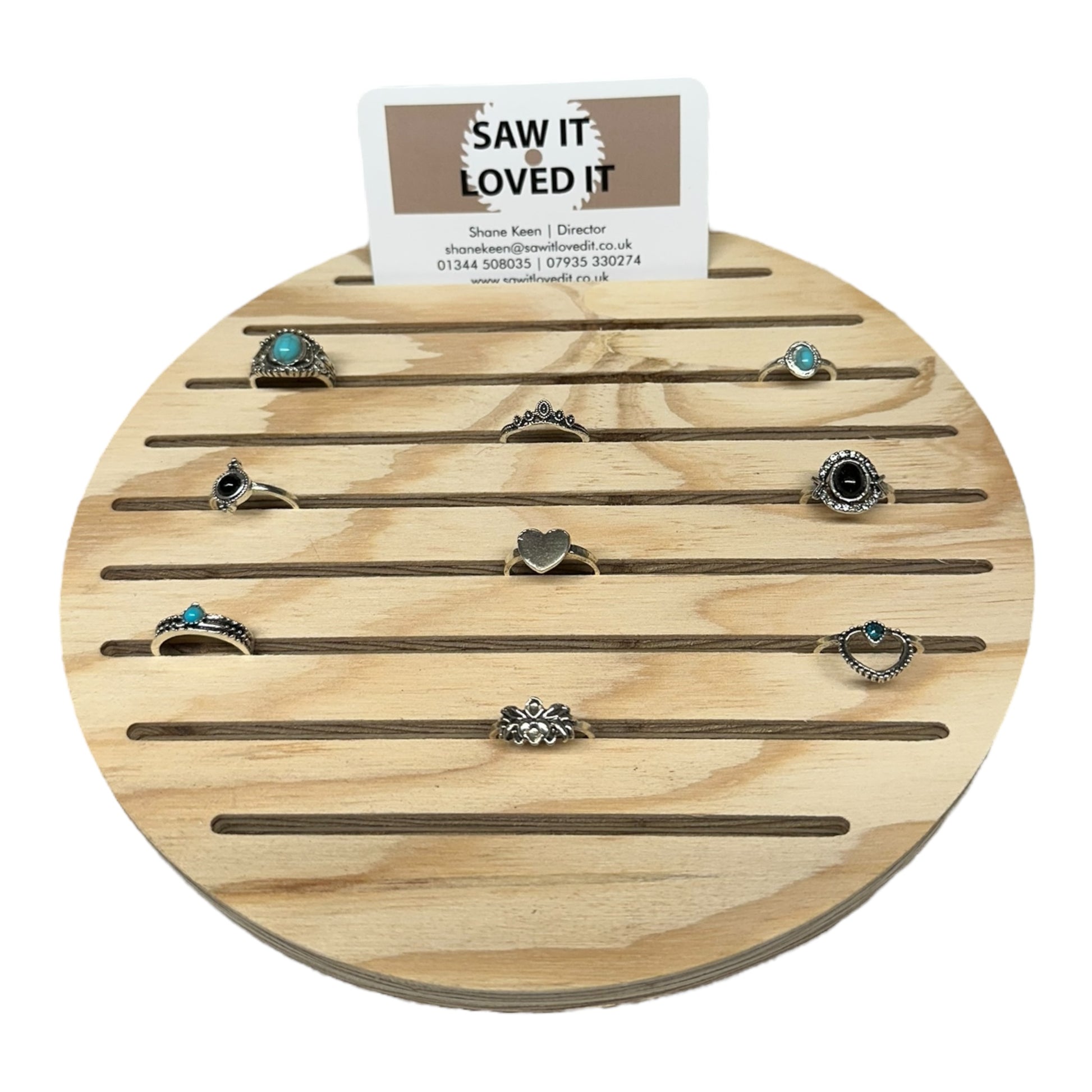 Showcase your products with style using our Circular Grooved Wooden Display Stand.