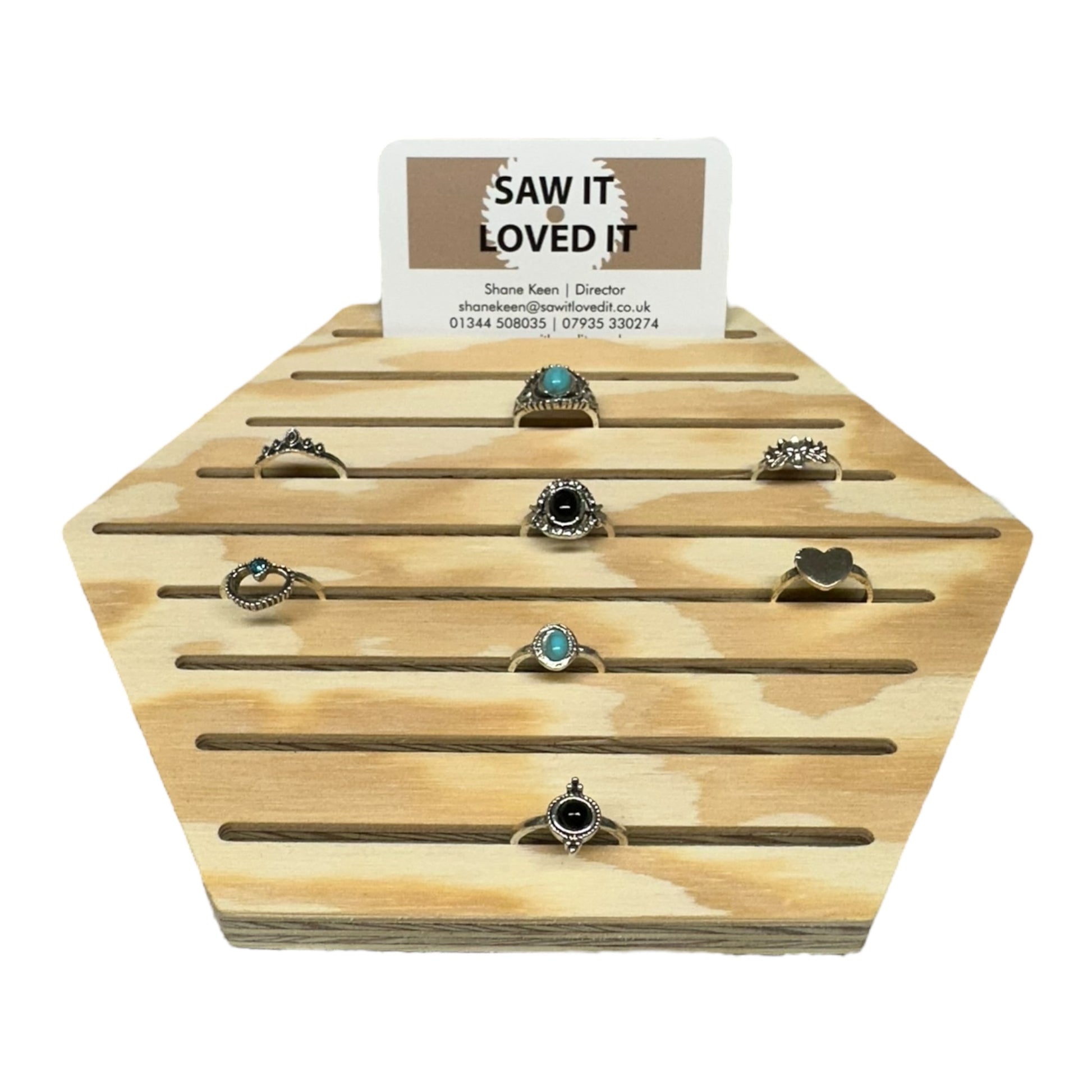 Hexagonal Grooved Wooden Display Rings Card Backed Products Business Cards