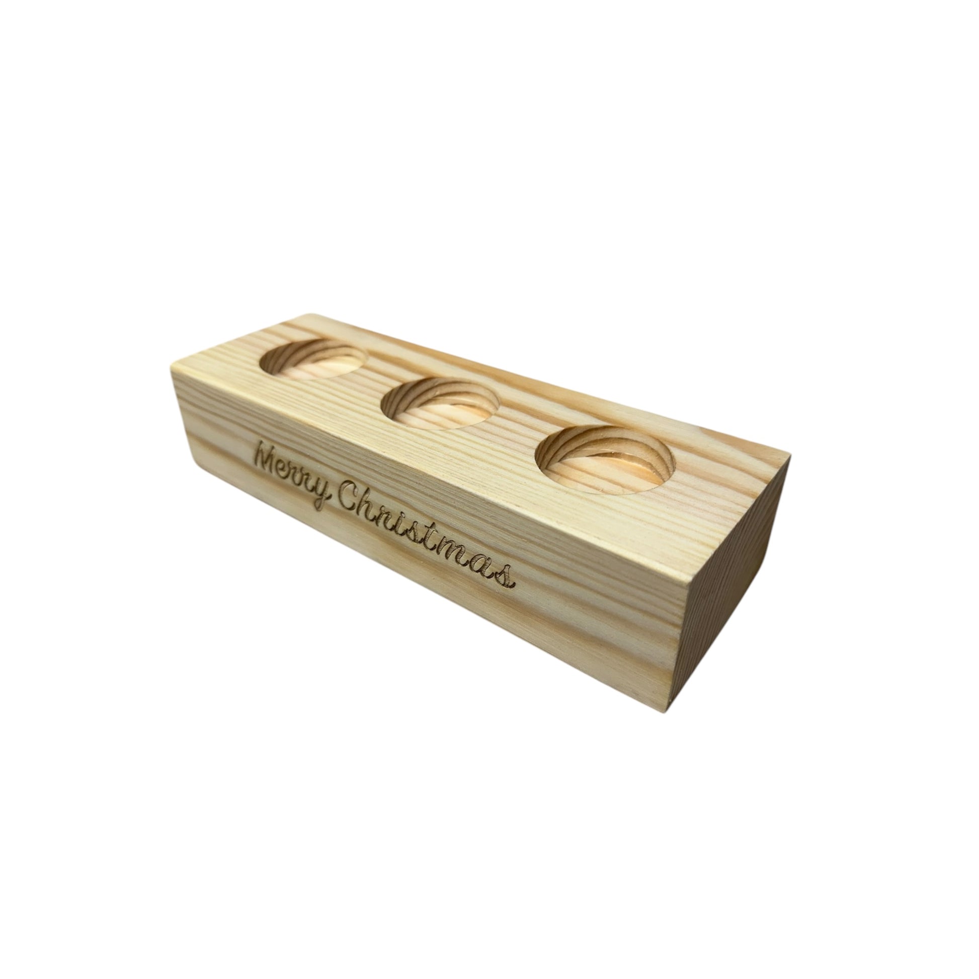 Bring a warm, festive glow to your home this season with our handcrafted wooden tea candle holder. Engraved with “Merry Christmas,” it’s the perfect way to add rustic charm and cozy ambiance to any holiday setting.