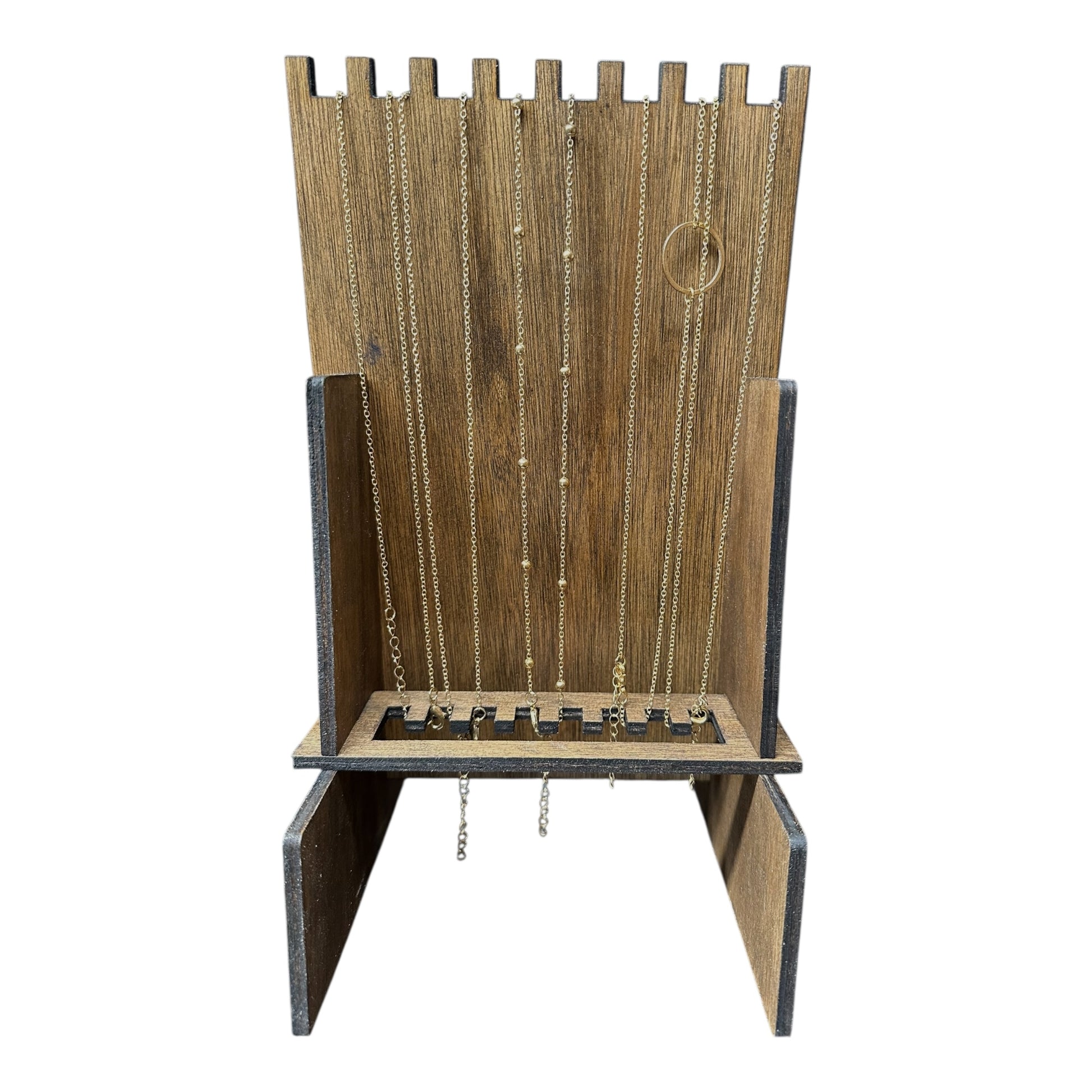 Multi-Groove Plywood Necklace Display With Collapsible Necklace Securing Base