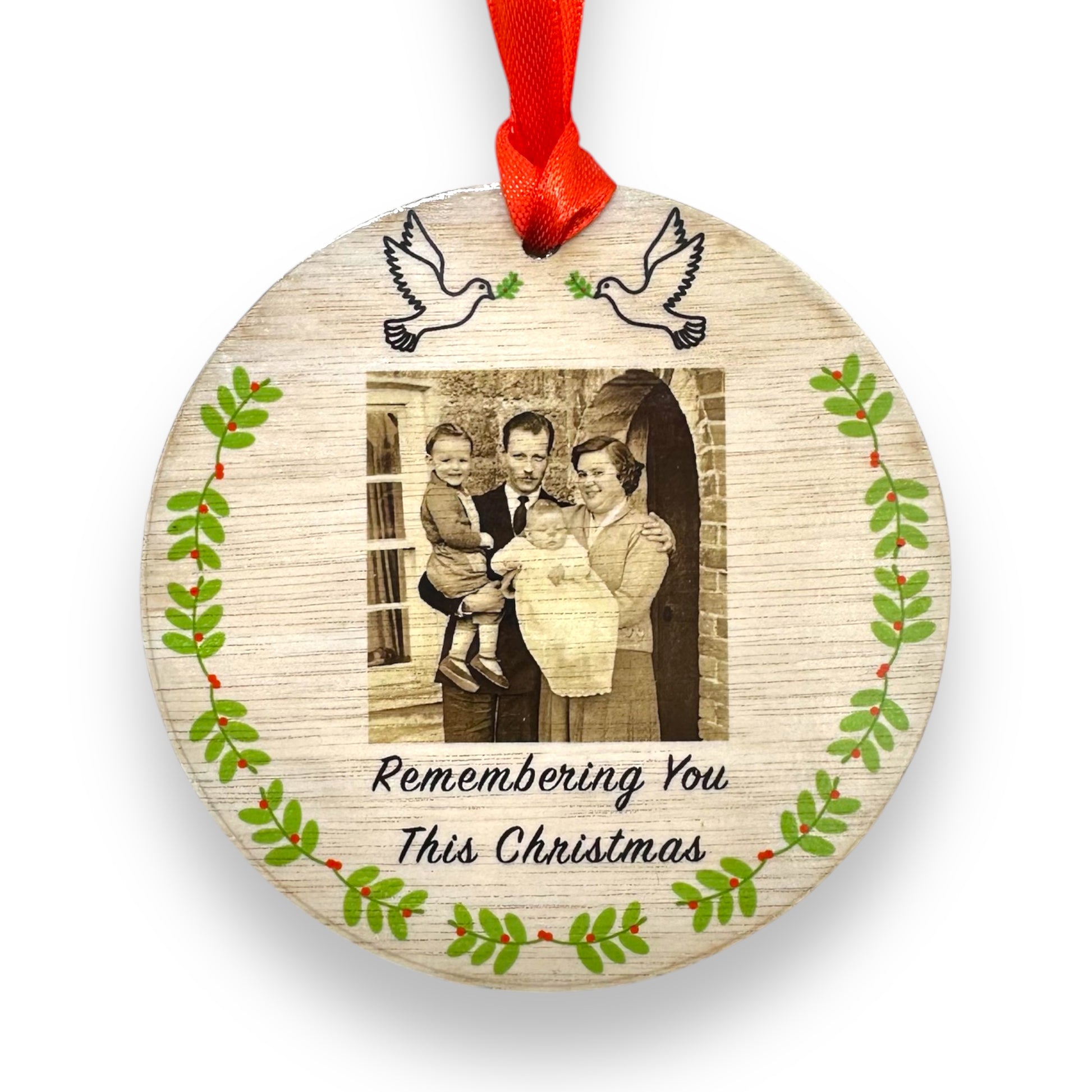 This beautifully crafted wooden Christmas bauble is a touching way to honor and remember loved ones who are no longer with us.