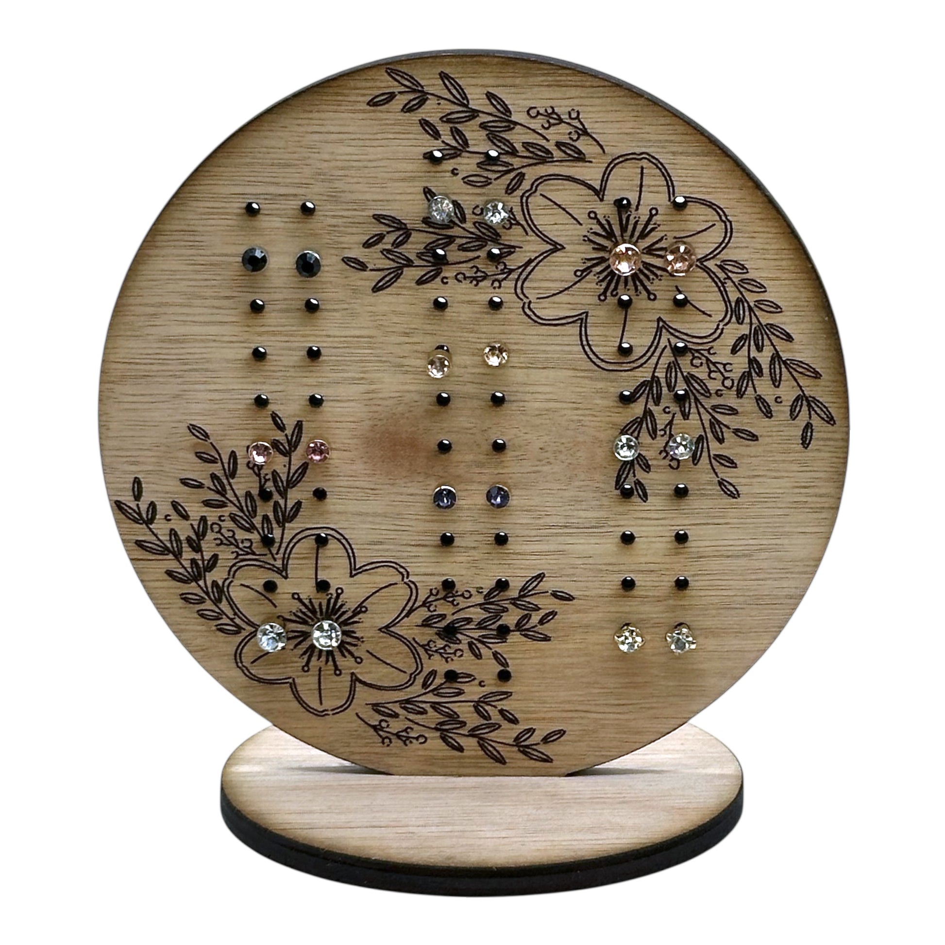 Stud Earring Storage | Circular Earring Display With Floral Design
